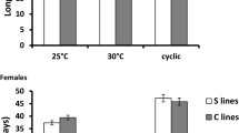 The strain of D. hydei used was derived from a parent stock of 235 gravid females collected in June 1993 from rotting strawberries at the South Coast Agricultural Research Station, CA and were supplied courtesy of Dr Joe Graves. Following collection, the flies were maintained in population cages containing approximately 3000 flies for six generations, then in a single population cage of approximately 500 flies for 25 generations before initiating the artificial selection programme.