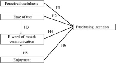 | H6 | Enjoyment→Purchasing intention | 0.41* | 14.81* | Supported |