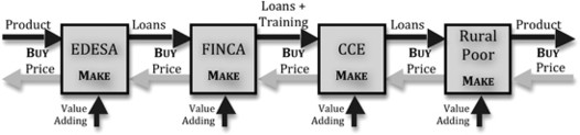 The plight of the world's poor has drawn the attention of charities, non-governmental organizations, governments and multilateral agencies. Poverty is a scourge that not only jeopardizes those who are poor but also deprives society of the contributions of a vast number of people, and produces inequities that cause strife in society. Despite recognition of the importance of its elimination, attempts to reduce poverty have fallen short of the goal of a world without poverty. 1 Increasingly, strategies to reduce poverty have turned to sustainable efforts like that of microfinance organizations, which attempt to alleviate poverty by using business models that stress entrepreneurship and repayment. In this article, we formalize analysis of business model approaches to poverty alleviation by examining how the needs of the poor can be met, by starting with the needs of their buyers in output market transactions to determine what to make and what to buy from suppliers in input market transactions. Suppliers of financial services that are essential inputs for the poor in turn have to determine what to make and buy, in order to ensure the success of the value-adding activities of the poor. Only if the poor succeed in meeting the needs of their buyers will they be able to repay the loans, allowing providers of financial services to once again provide these services, creating a virtuous cycle of poverty alleviation and reduction.