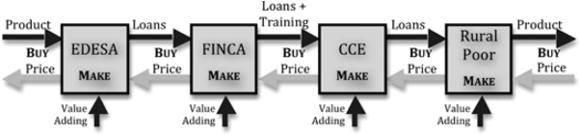 Honey Care Africa helps poor farmers in Kenya become beekeepers and make high quality honey.15, 16 Honey Care manufactures and sells the equipment required by the poor farmers to start a beekeeping enterprise; a development partner provides the microcredit to the farmers for purchasing the equipment after the farmers receive intensive training; and Honey Care purchases the honey produced by the farmers, guaranteeing them a steady income and providing Honey Care with an assured supply of high quality honey. Honey Care deducts a percentage of the farmers’ earnings and uses it to repay their loans. Honey Care packages and sells the honey to distributors who sell to retailers for sale to consumers. The sale to consumers is final and all transactions preceding the sale to consumers are intermediate transactions.