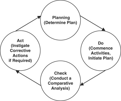 The concept of the ‘Plan, Do, Check and Act (PDCA) control cycle’ can be simply defined as establishing the project objectives, based on the project brief and then determining the appropriate methods of reaching the set goals (Plan), implementation of the Plan (Do), check the effect of the implementation by comparing the actual results with the Plan (Check) and taking any appropriate corrective action (Act). PDCA is a continuous process applicable to any project (see Figure 2).