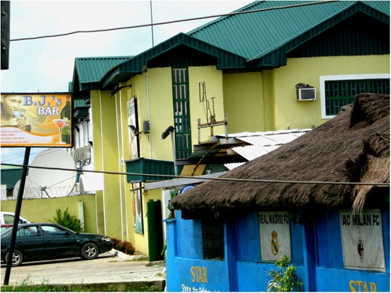A typical commercial bank building with visible sandcrete wall cracks in Yenagoa, Nigeria.