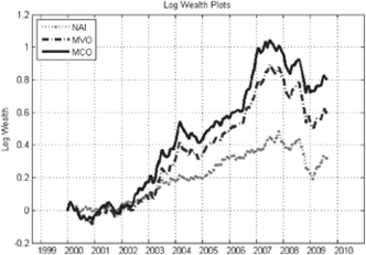 Out-of-sample test results. Note: NAI: Naive approach, MVO: Mean variance optimization, MCO: Mean CVaR optimization.Source: Quantitative Investment Group (Period from January 2000 to August 2009).