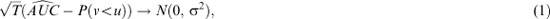 The AUC can be interpreted as P(v<u) (see Green and Swets, 1996) and if T P /T N → λ>0 as T → ∞, under standard regularity conditions Hsieh and Turnbull (1996) show that