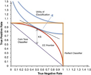 Customarily, TP(c), the true positive rate, is called sensitivity and TP(c), the true negative rate, is called specificity.