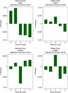 We identify business cycle peaks using real GDP per capita. If output per capita growth was negative in any given year, we coded the preceding year as the business cycle peak. We then adjusted the resulting series for short-term rebounds within recessions. These are cases when output rebounded but failed to recover the prerecession level and fell again in the following year. We treated such short-term rebounds as part of the same recessionary episode and not as independent business cycles. Some minor adjustments were also made when country histories and other data sources suggested a slightly different chronology. For example, some differences may arise when accepted chronologies are built on higher-frequency (quarterly/monthly) data, in contrast to our annual data. In such cases, we moved the peak year by a maximum of one year to align our chronology with the accepted country histories.
