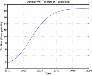 There is a growing concern among policy makers and analysts regarding the mismatch between demand and supply of the revenue for improving and maintaining highway infrastructure. One possible solution is to link actual vehicle miles traveled (VMT) to the fee structure. The main objective of this paper is to model VMT dynamics and establish a methodology for designing an optimal VMT tax rate. The paper proposes a novel model for VMT dynamics and estimates the model parameters using historical data. An optimal control problem is then formulated by designing a cost function which aims to maximize the generated revenue while keeping the tax rate at a reasonable rate. Using optimal control theory, a solution is provided to this problem. Steady-state analysis of this model is provided and simulations are performed for the 50-year period showing the projected VMT, generated revenue, and the optimal tax rate. The model provides a parameter in the cost function which can be adjusted for achieving a certain amount of revenue in a given time frame.