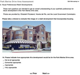 This paper is a contribution to the discussion on how to incorporate community participation into the urban design process within a pedagogical context. It is based on an outreach project by a class in the city planning graduate program at California Polytechnic State University, San Luis Obispo. The project included an Internet survey to gather community input for a contentious riverfront site in Redding, CA. The responses permitted a study of perceptions, attitudes and expectations about the city and the project area, and an examination of design alternatives. The Internet survey provided 864 responses and generated a rich amount of information that was utilized in the programming and selection of design concepts for the project. The site's proprietors, the community and the media were in full support of the final project, which prompted the city council to appoint a special committee to oversee the advancement of specific policies and recommendations for the area's future development. The effectiveness of the method of public input and the successful project process suggest important pedagogical and professional implications.