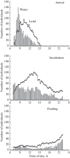Zubakin, V.A. and Konyukhov, N.B., Biology of reproduction of the whiskered auklet (Aethia pygmaea): pattern of nesting, activity in the colony, and social behavior, Biol. Bull. (Moscow), 1999, vol. 26, no. 5, pp. 460–468.