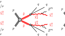 Supersymmetry (SUSY) [1,2,3,4,5,6,7] is an extension of the Standard Model (SM) that introduces partner particles (called sparticles) that differ by half a unit of spin from their SM counterparts. The squarks (\(\tilde{q}\)) and sleptons (\(\tilde{\ell }\)) are the scalar partners of the quarks and leptons, respectively, and the gluinos (\(\tilde{g}\)) are the fermionic partners of the gluons. The charginos (\({\tilde{\chi }}_{i}^{\pm }\)) and neutralinos (\({\tilde{\chi }}_{i}^{0}\)) are the mass eigenstates (where the index i is ordered from the lightest to the heaviest) formed from the linear superpositions of the SUSY partners of the Higgs bosons (higgsinos) and electroweak gauge bosons.