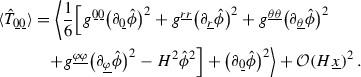 where for simplicity we have dropped the A labels. The final unrenormalized expression in the FLRW coordinates (47) can be obtained by using the tensor transformation law \(T_{\mu \nu }=\frac{{\partial x^{\tilde{\alpha }}}}{{\partial x^\mu }}\frac{{\partial x^{\tilde{\beta }}}}{{\partial x^\nu }}T_{\tilde{\alpha }\tilde{\beta }}\) with (53–56) and (51). This gives