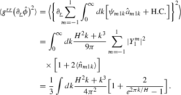 $$\begin{aligned} {\hat{\rho }=\prod _{\ell m k}\big (1-e^{-\frac{{2\pi k}}{{H}} }\big )\sum _{n_{\ell m k}=0}^\infty e^{- \frac{{2\pi k}}{{H}}n_{\ell m k}}|n_{\ell m k},A\rangle \langle A, n_{\ell m k}|\,.} \end{aligned}$$