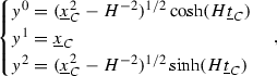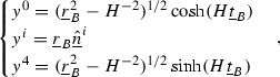 $$\begin{aligned} {\left\{ \begin{array}{ll}y^0=H^{-1}\sinh (Ht)+(H/2){x}^2e^{Ht}\\ y^1=e^{Ht}x \\ y^4=H^{-1}\cosh (Ht)-(H/2){x}^2e^{Ht}\end{array}\right. }\,, \end{aligned}$$