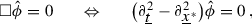 $$\begin{aligned} {\bigg [\partial _\eta ^2+(n-2)\frac{{a'}}{{a}}\partial _\eta -a^2\partial _i\partial ^i+\frac{{n-2}}{{4(n-1)}}a^2R\bigg ]\hat{\phi }=0\,,} \end{aligned}$$