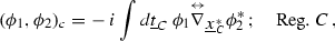 $$\begin{aligned} {\big (\phi _1,\phi _2\big )\!=\!- i\int _\Sigma d^{n-1}\mathbf {x}\sqrt{\gamma }n^\mu \,\phi _1 \overset{\leftrightarrow }{\nabla }_\mu \phi ^*_2\,;\quad \overset{\leftrightarrow }{\nabla }_\mu \!=\! \overset{\rightarrow }{\nabla }_\mu \!-\!\overset{\leftarrow }{\nabla }_\mu \,.} \end{aligned}$$