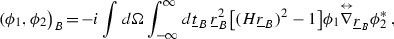 $$\begin{aligned} {\big (\phi _1,\phi _2\big )=-i\int d\Omega \int _0^\infty dr\,r^2\,a^{2}\,\phi _1 \overset{\leftrightarrow }{\nabla }_\eta \phi ^*_2\,,} \end{aligned}$$