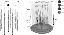 Atmospheric muon events have been generated using the MUPAGE package [14]. This software provides a parametric calculation of the underwater muon flux of atmospheric muon bundles, based on a full Monte Carlo simulation of the primary cosmic ray interactions and shower propagation in the atmosphere. With MUPAGE, muon bundles have been generated with a bundle energy \(E_b\) above \({10}{\hbox { GeV}}\) over the surface of a cylinder which extends the instrumented volume by 280 m. Light emitted by muons simulated outside of this volume have a negligible probability to produce at least one L1 coincidence.