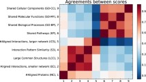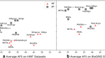 Tables 2 and 3, as well as Figs. 9 and 10, report the EC and FC scores of the alignments, respectively. These scores are produced by the aligners under consideration using the aligners’ parameters suggested by default whenever it was needed. Because all alignments attained a very low FC score, to put these low scores in perspective, we estimated the maximum value FCmax of the FC score for every pair of networks. This maximum value FCmax was obtained solving the maximum weighted bipartite matching problem, where the complete bipartite graph had the proteins as nodes and the weight of each edge connecting one protein in a network to a protein in the other network was the FC score of the corresponding pair of proteins. These maximum values are listed in Table 3. We observe that they are very low, being around 0.2 in most computations. Also, we observe in Tables 2 and 3, that AligNet and HubAlign obtained the best balance between FC and EC scores followed by PINALOG and L-GRAAL.
