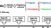 This study was conducted with approval from the Institutional Animal Care and Use Committee at Washington State University (4295). Holstein heifers (n = 3359) from a commercial heifer raising facility in Parma, Idaho were artificially inseminated (AI) to determine HCR. Heifers were bred following observed estrus after reaching approximately 11–13 months of age, a minimum height of 129 cm at the withers, and a minimum weight of 390 kg. Heifers were bred via AI with semen representing 51 different Holstein sires. Pregnancy was determined via rectal palpation of the uterus 35 days after AI, and DairyComp305 (Valley Agricultural Software, Tulare, CA) health records were used to eliminate heifers that subsequently aborted their calf. After phenotypic evaluation of 3359 heifers, 497 heifers that conceived via the first AI service, 215 heifers that conceived on or after the 4th AI service, and 190 heifers that never conceived despite at least 4 AI services were selected for enrollment in the present study.