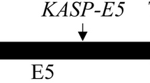 The KASP amplification system (8 μl total) contains 4.5 μl high rox KASP master mix, 0.13 μl Assay mix, 0.97 μl ddH2O and 2.4 μl of template DNA (50 ng/μl). The reaction was performed in a Bio-Rad CFX real-time PCR system (Bio-Rad Laboratories, Inc. California, USA), PCR procedure was as follow: 94 °C for 15 min, 94 °C for 20 s, followed by 10 touchdown cycles of 64 to 58 °C (decreasing 0.6 °C per cycle), 38 cycles of 94 °C for 20s, 58 °C for 60s, and fluorescence was detected using Bio-Rad CFX Manage 3.1 software.