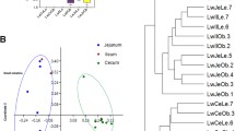 Cecum lumen obtained an average of 718 OTUs in the tested samples, ranging from 195 to 995, while the average number of OTUs for fecal samples was 888, which ranged from 618 to 1066. The α-diversity of microbial community of cecum lumen and feces was described in our previous publication [17]. Here we focused on the identification of bacterial genera enriched in cecum lumen and feces, respectively. A total of 29 genera were identified in both cecum lumen and feces, while 13 genera were specific to cecum and two genera were unique to feces (Fig. 1a). We further performed a LEfSe analysis on the 29 common taxa to compare their relative abundances in the two types of samples. As shown in Fig. 1b, 26 out of the 29 genera showed distinct relative abundances between cecum lumen and feces (P < 0.05), including 12 genera enriched in the cecum lumen and 14 genera showing higher abundances in the feces.