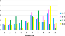The IRs (infection responses) exhibited by barley genotypes were generally in agreement between three replicates within each experiment. The frequency distributions for the average IRs of barley genotypes are given in Fig. 1. Only three varieties (G-19980 and Biom in case of Kr2 tests and AC 0760258 for Ch3) showed heterozygosity and therefore were excluded from the further analysis. The majority (43.0%) of barley genotypes were susceptible to both C. sativus isolates; 53% - to Ch3 and 58% to Kr2 (IRs – 6-9). Nine varieties were resistant to both isolates: B-1, G-21219, Kolchan, Mutant 68, Omsky Golozyorny 2, Severny, Signal, Svetik, and Tanay. Sixteen varieties demonstrated resistance types of reaction (IRs – 1-3.9) to isolate Ch3 and 15 to Kr2. Moderate resistance (IRs – 4.0-5.9) to C. sativus isolate Ch3 was determined for 29 varieties, and to Kr2 for 24 varieties. Cultivars Emelya, Impuls, Kedr, Merit 57, and Reyd demonstrated isolate (race) specific resistance, they were susceptible to one isolate and resistant to another. Eleven varieties with moderate resistance (MR) to isolate Ch3 were susceptible to isolate Kr2, and vice versa 8 varieties with MR to isolate Kr2 were susceptible to Ch3 (Additional file 1).