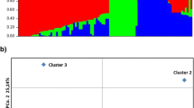 From 94 accessions genotyped 47 (50%) were cultivars and lines developed in breeding centers located in Siberia. Other 47 accessions were cultivars and lines maintained in the Siberian spring barley collection, but originating from other regions and countries. Cluster analysis revealed 4 major groups of accessions (Additional file 2). Two big groups consisting of 38 (group I) and 30 (group IV) genotypes noticeably differed by percentage of Siberian cultivars and lines (73% and 17% respectively). Groups II and III were “half-Siberian” (Additional file 2). Group I had the highest percentage of varieties resistant to both isolates of C. sativus (18% vs 0, 3 and 5% in other three groups) and the lowest percentage of susceptible varieties (32% vs 47, 48 and 50% in other groups) to both isolates (Additional file 2). This may suggest essential contribution of Siberian varieties to resistant germplasm of spring barleys studied. Indeed, we noticed that among accessions resistant to both isolates 67% had Siberian origin.