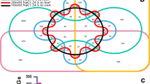 The transcriptomic data and digital gene expression libraries (C6, C24, D6, D24, S6, and S24) analyzed in this study were generated as previously described [20]. Seeds of Z. xanthoxylum used in this work were collected from wild plants in Alxa League of Inner-Mongolia Autonomous Region, China, and were stored in the Key Laboratory of Grassland Livestock Industry Innovation, Ministry of Agriculture and Rural Affairs, Lanzhou, China. The raw data are submitted to the NCBI Sequence Read Archive (PRJNA512400). Each transcriptomic library was constructed from seedling roots, using 5–6 seedlings per sample. Libraries C6 and C24 correspond to treatment with a mock solution (1/2 strength Hoagland nutrient solution) for 6 h and 24 h, respectively; D6 and D24 correspond to treatment with an osmotic stress solution (1/2 strength Hoagland nutrient solution with added sorbitol, equivalent to − 0.5 MPa osmotic potential, sorbitol concentration ≈ 165 mM) for 6 h and 24 h, respectively; and S6 and S4 correspond to treatment with a salt solution (1/2 strength Hoagland nutrient solution with 50 mM NaCl) for 6 h and 24 h, respectively. Libraries were constructed using a tag-based digital gene expression protocol [20]. The resulting libraries were sequenced in parallel using an Illumina HiSeq™ 2000 sequencing platform (BGI Shenzhen). Low quality tags from each library were removed (e.g. tags with unknown nucleotide “N”, “empty tags” with no tag sequence between the adaptors, and tags with only one copy number). The resulting “clean” tags were mapped to our transcriptome reference database [20]. To establish differential expression, the number of clean tags for each gene was calculated and normalized to the number of transcripts per million clean tags [65]. To compare differences in gene expression, the tag frequency in each library was statistically analyzed according to Audic and Claverie [66]. The false discovery rate (FDR) was used to determine the threshold p-value in multiple tests [65, 67]. Genes that displayed FDR<0.001 and absolute value of the log2 ratio>1 were selected as significantly different.