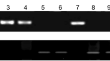 PCR reactions for gene cloning and molecular marker tests were performed in an MJ Research PTC-200 thermal cycler in a total volume of 15 μl, including 1.5 μl of 10 × PCR buffer, 1.2 μl of 2.5 μM dNTP each, 4 pmol of each primer, 0.75 U of LaTaq polymerase (TaKaRa), and 500 ng of template DNA, then up to 15 μl with ddH2O. PCR amplification were 94 °C for 5 min, followed by 35 cycles of 94 °C for 45 s, 57 °C–65 °C for 45 s, and 72 °C for 45 s, with a final extension of 72 °C for 10 min. Amplified PCR fragments were separated on 1.5% agarose gel with the nucleic acid dye Gelview (TaKaRa).