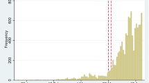 where \( {I}_m^{obs} \) is the bootstrapped data sample for each iteration m = 1, …, M; \( {\widehat{\theta}}_{jm} \) represents the ML estimates for model j ∈ {FE, DB} given sample m; Lj is the maximum log-likelihood for the model j; \( {\mathrm{L}}_{0\mathrm{a}}={\mathrm{L}}_0\left({\widehat{\uptheta}}_0\right)-{\mathrm{L}}_{\mathrm{a}}\left({\widehat{\uptheta}}_{\mathrm{a}}\right) \) is the difference between the maximum log-likelihood estimates under H0 and Ha given the original data; and numb counts the number of times the condition is true for each of M iterations. A small sample correction is implemented by adding a 1 to the numerator and denominator. Because the FE and DB models are nonnested, selection of a unique null model is not feasible. Instead, the Cox test is conducted twice, with each of the models serving as the null in turn.