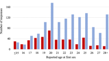 The 2017 PSID-TASFootnote 3 collected data from 2,526 males and females aged 18–28 (87% response rate). The PSID-TAS age restriction necessitated restricting the ages of other samples when comparing to these data. Data were collected by telephone from October 2017 to June 2018. The 2019 PSID-TAS3 introduced a web option for data collection in addition to telephone, which yielded interviews from 2,595 males and females between November 2019 and July 2020 (86% response rate). Both studies replicated the NSFG wording for measures of forced intercourse. Estimates in this analysis incorporated the cross-sectional weight that accounts for the original PSID selection probability, non-response, differential eligibility, and calibration to known features of the population of interest [28, 29].