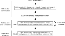 To address potential tissue–plasma discordance caused by inter-patient variations, we evaluated DNA methylation changes on 9 paired tissue–plasma samples from the same cirrhotic HCC patients using qMSP for the selected 5 DMMs (Supplementary Table 3). As presented in Supplementary Fig. 3, DNA methylation levels were substantially lower in cfDNA compared to liver tissues, indicating a low contribution of tumor-derived DNA in the blood samples.