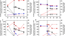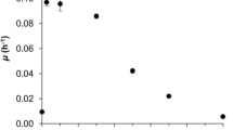 The efficiency of the pertraction system in BP was anticipated to be considerably lower at a pH value of 6.0 compared to 5.5. At a pH of 6.0, only 6.6% of the n-caproic acid is present in the undissociated form, while this is 18.3% at a pH of 5.5. Because the undissociated acids are transferring from the fermentation broth into the mineral oil through the membrane of the forward module, the pertraction rates were positively correlated to the concentration of undissociated acids at the membrane boundary [52]. At a loading rate of 10 g COD L−1 day−1 (Phase IV), the average efficiency for n-caproic acid extraction was only 65% (Table 3). With open cultures, a removal efficiency of greater than 95% for n-caproic acid has been achieved with a similar pertraction system at mildly acidic pH values of 5.5 [53]. During Phase VI, the concentration of undissociated n-caproic acid was 3.5 ± 0.4 mM in BP (pH 6) due to the relatively inefficient extraction. This is within the concentration range typically reported to be toxic for pure or open cultures, depending on the concentration of other undissociated carboxylic acids (0.66–7.5 mM; [50, 51, 53]). For BNP (pH 7), the undissociated n-caproic acid concentration was 0.54 ± 0.07 mM, which is considerably lower and outside of the inhibiting concentration. At mildly acidic conditions, it is, therefore, essential to operate an optimal pertraction system or other extraction technology to prevent product toxicity.