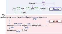 Additional file 4. All transcripts considered for the pathway analysis of starch metabolism (Additional file 1: Figure S10b); All transcripts considered for the pathway analysis of glycerolipid metabolism (Figure 4); All transcripts considered for the pathway analysis of central carbon metabolism (Figure 6).
