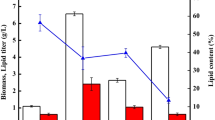 Lipids were extracted in accordance with the method of Bligh and Dyer [32] with modifications [33]. Lipids were extracted from lyophilized biomass using a mixture of chloroform and methanol (2:1 v/v). The lipid mixture was centrifuged at 5000g for 25 min to completely dissolve the lipids in the solvent. Then, the organic phase was washed twice with 0.15% (w/v) NaCl solution. The purified chloroform layer was evaporated to dryness with nitrogen gas (Nitrogen Evaporation System). Lipid production was expressed as gram lipid per liter culture media. The lipid content was expressed as gram lipid per gram DCW (%).