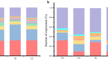 Two pyramidal stacks (2 m in diameter and 1.5 m in height) were built with the mixed materials mentioned above for composting. Lignocellulose-decomposing inoculants (named DN-1) were added to one stack (inoculated compost), and the other control stack did not receive any inoculants (natural compost). The lignocellulolytic inoculants (DN-1) included Phanerochaete chrysosporium, Streptomyces griseorubens C-5, Bacillus subtilis W1, Bacillus methylotrophicus W8, and Bacillus amyloliquefaciens X9. P. chrysosporium was purchased from China General Microbiological Culture Collection Center (CGMCC). S. griseorubens C-5 was isolated from soil in Heilongjiang Province of China. Bacillus subtilis W1; Bacillus methylotrophicus W8 and Bacillus amyloliquefaciens X9 were isolated from fresh cattle manure [26, 27]. Cellulase, laccase, peroxidase, xylanase, amylase, and protease activities were observed in the microorganisms of the inoculants [26, 27]. For the inoculation, the suspension of the inoculants [1 × 109 colony-forming units (CFU) mL−1] were evenly sprayed onto composting substrate at the rate of 10 mL of the suspension versus 1 kg compost. The composting process lasted approximately 46 days, and the piles were turned manually twice a week during the first 2 weeks and then once a week afterward to maintain aeration. Samples were collected from three locations within the stacks (15, 50, and 90 from the top surface of the pile), mixed, and then stored at − 80 °C on days 1, 3, 12, 18, 22, 31, and 46.