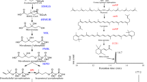 The quantitative detection of fatty acids was available by GC–MS method. 10 μL sample was injected into a series 6890N GC (Agilent Corp., USA), combined with a GCT Premier™ MICROMASS mass spectrometer (Waters Corp., USA), on a DB-5 ms column with a split injection of 5:1. GC conditions were carrier gas (helium) at 91 kPa per min in constant pressure mode, oven temperature programed from 70 °C (3 min) to 280 °C at the rate of 3 °C per min, source temperature at 250 °C, and interface temperature at 250 °C. Electron impact (EI) spectra were obtained at − 70 eV. GC–MS raw data were analyzed using the software package Masslynx4.1 (Waters Corp., USA), avoiding detector overload and isotope fractionation as described.