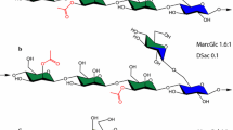 Softwood has significant potential as feedstock for renewable energy production and biorefining, due to its abundancy, low cost, and lack of competition with the food and feed industry. Enzymatic degradation of softwood to fermentable monomeric sugars is, however, still challenging due to its complex composition and inhomogeneous architecture [1]. Not only lignin but also hemicellulose, β-1,4 mannan and β-1,4 xylan (hereafter named mannan and xylan), prevents enzymatic hydrolysis of cellulose in the absence of relevant accessory enzymes [2, 3]. The hemicelluloses are closely associated with the cellulose fibrils and with lignin [1, 3,4,5]. The main hemicellulose in softwood is O-acetylated galactoglucomannan (Fig. 1), accounting for 15–25% of the wood dry matter [6, 7]. Galactoglucomannan consists of a β-1,4 linked backbone of d-mannopyranosyl and d-glucopyranosyl units. The mannopyranosyl units can be decorated with single α-1,6 linked d-galactopyranosyl residues at C-6 and be O-acetylated at C-2 and C-3 [6, 8]. The typical Man:Glc:Gal ratio in Norway spruce galactoglucomannan has been reported to be 3.5–4.5:1:0.5–1.1 with the mannopyranosyl residues being O-acetylated to an approximate degree of 0.2–0.3 [9,10,11]. Variations in the ratios depend on the raw material, but also extraction methods and pretreatment can reduce the amount of backbone decorations [11]. Mannans are not only found as structural units in plant cell walls, but also serve as storage polysaccharides in certain species, e.g., guar gum from the seeds of the guar plant (Cyamopsis tetragonolobus, Man:Gal, 2:1), locust bean gum, from the carob tree (Ceratonia siliqua, Man:Gal, 4:1) and the glucomannan from the konjac plant (Amorphophallus konjac, Man:Glc, 1.6:1) [7, 12].