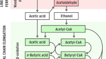 The addition of YE appeared to have no effect on the final yield of ethanol in enrichments at an initial pH of 5.5 (Fig. 2b, c), but triggered the production of butyrate, butanol and small amounts of caproate leading to a broader product spectrum in all YE-supplemented enrichments (Fig. 2c–e). The production of butyrate and butanol was observed to take place in a two-step reaction, which indicates that they were produced through chain elongation and reduction of VFAs (Additional file 1: Figures S6, S7). The potential of microbial consortia for producing medium-chain fatty acids (MCFAs) through chain elongation has been shown in a number of studies [18, 51]. However, when it comes to ethanol production, the chain elongation process is often regarded as a major drawback as it reduces the selectivity of the mixed culture towards ethanol due to the conversion of ethanol and VFAs into MCFAs, as found in El-gammal et al. [52]. In this study, a significant chain-elongating activity appeared to be prevented by the low pH of the fermentations (generally ranging between 4.3 and 4.6 at the end of the experiments), since both acetate and ethanol remained as the major end products at all enrichment conditions. Ganigué et al. [21] reached similar conclusions in a study targeting the production of higher alcohols, in which low pH was found to affect negatively the chain elongation process. Nevertheless, the reduced chain-elongating activity found in the present study allowed achieving high ethanol yield in enrichments at pH 5.