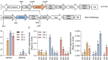 The forward and reverse sequences of 1151 bp from the conserved GmPLDα1 cDNA in Williams 82 were used for making RNAi constructs, which were different from the forward 820 bp and reverse 1300 bp from conserved GmPLDα1 sequence derived from cloning partial sequence in Fayette used previously [9]. The RNAi cassette was assembled into the NotI site of the soybean expression vector pBetaConSoyHyg, flanked on its 5′ end by the seed-specific promoter for the soybean α’ subunit of β-conglycinin gene [56] and on its 3′ end by the 3′UTR of the phaseolin gene [57]. The vector backbone, which was derived from pBluescript SK-(Stratagene), was engineered with a hygromycin B phosphotransferase gene [58] under control of the potato ubiquitin-3 promoter [59] for selection of transformed soybean embryos. Additional file 1: Figure S1 illustrates the cloning strategy and details of the organization of gene cassettes generated in the vector pBetaConSoyHyg for soybean transformation. The construct was introduced into soybean (Glycine max cv. Jack) somatic embryos using biolistic transformation as described [60]. Embryos were maintained after bombardment in SHaM media [61] with hygromycin selection [60]. Mature somatic embryos obtained following hygromycin selection were screened by immunoblotting analysis for PLDα1 levels. Embryos, representing independent transgenic events, that showed reductions in PLDα1 levels, were desiccated and used for regeneration of transgenic plants as described [60]. Regenerated plants were advanced to homozygosity (> T3 generation) for use in the described studies. One hundred forty-three putative tissues were recovered after selection. Ten transgenic soybean events were recovered and fully grown in the greenhouse. Using enzyme activity, PCR and western blotting, two successfully repressed transgenic soybean events (#1020 and #1048) were selected from ten transgenic events for analysis.