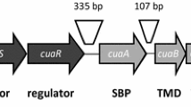 Nonetheless, several anaerobic bacteria are able to use this recalcitrant substrate as the sole carbon and energy source [2]. Among them, Ruminiclostridium cellulolyticum, a mesophilic, anaerobic model bacterium raises special interest for years due to its ability to efficiently degrade and use plant cell wall polysaccharides including cellulose and hemicellulose, and the availability of genetic tools [3,4,5,6,7,8]. To achieve the enzymatic degradation of plant cell wall polysaccharides, it produces multi-enzyme complexes called cellulosomes by assembling on a scaffolding protein diverse enzymes belonging to families of glycoside hydrolase (GH), carbohydrate esterase (CE), or polysaccharide lyase (PL) [6, 9]. The released mono- and oligosaccharides are subsequently imported by the bacteria and catabolized. For example, the uptake of xyloglucan and cellodextrins was shown to be ensured by specific ABC transporters, the imported dextrins being further degraded into simple monosaccharides by cytosolic GHs. Two distinct clusters of genes dedicated to either the catabolism of xyloglucan or cellodextrins were shown to encode ABC transporter components (including a solute-binding protein collecting the solute to be imported and two transmembrane domains forming a channel), intracellular GH(s), and a signal transduction system [8, 10]. The ABC transporter called CuaABC (for cellulose utilization associated) has a solute-binding protein which binds to cellodextrins with lengths ranging from cellobiose (G2) to cellopentaose (G5), suggesting that at least these cellodextrins might be imported in the cytosol. CuaABC was shown to be essential for growth of the bacterium on both cellobiose and cellulose growth substrate [10]. We have formerly shown that imported cellobiose is subsequently converted into glucose and α-glucose 1-phosphate (G-1P) by the cellobiose phosphorylase A (CbpA) [10]. The gene encoding this enzyme forms with the genes cuaABC an operon named (cuaABC-cbpA). This operon is regulated by a predicted three-component system CuaDSR encompassing a binding protein CuaD, a sensor (CuaS), and a regulator (CuaR) encoded by the operon cuaDSR located upstream of cuaABC-cbpA. In our previous study, we constructed an R. cellulolyticum cuaD mutant strain (MTLcuaD) in which a type II intron inactivates cuaD. The modification induced a polar effect on the expression of the downstream genes cuaS (sensor) and cuaR (regulator), thus preventing the upregulation of the expression of cuaABC-cbpA operon encoding the cellodextrins ABC transporter and the cellobiose phosphorylase A. In consequence, the MTLcuaD strain was unable to grow on either cellobiose or cellulose. The transformation of the strain with a vector containing the ABC transporter genes but not the cellobiose phosphorylase-encoding gene cbpA restored growth on cellulose but not on cellobiose. This observation suggests that cellodextrins of degree of polymerization (DP) greater than 2 might be imported in the cytosol, thus ensuring growth on cellulose of this strain. Similarly, another cellulolytic strain (Hungatei) Clostridium thermocellum was reported to assimilate long cellodextrins of 5 and 6 glucose residues when grown on cellulose [11]. In general, the import of long cellodextrins is believed to be more cost-effective compared to the import of short ones, since for the same ATP transport cost, long cellodextrins carry more glucose units and, therefore, generate more energy than short ones [11].