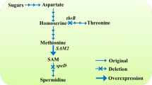 All strains and plasmids used in this study are listed in Table 2. All resulted B. amyloliquefaciens strains were derived from the wild-type strain B. amyloliquefaciens HZ-12. E. coli DH5α was used to construct plasmids and amplify metA, metB, thrA and metL, and Saccharomyces cerevisiae CICC 31001 was used for amplification of SAM2 and YML082 W genes. Primers used in this study are included in Additional file 1: Table S1.