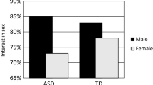 Within autism, there appears to be greater variability in gender identity than found in the wider population. Studies proposing this link have identified an increased prevalence of gender variance in autism. Defined as an umbrella term that describes variability between an individual’s assigned sex and gender identity [1, 2], gender variance has been reported by 5.4 to 7.2% of autistic natal male and female youths [1, 2] and 11.3% of autistic adults [3], yet between 0.7 [1] and 5% [3] in non-autistic or control samples. A relationship between gender dysphoria (GD) and autism has also been suggested, where both a higher representation of GD in autistic groups irrespective of sex, as well as an increased number of autistic symptoms in adults with GD, are common observations within current literature [3,4,5]. Sex differences have also been observed, where the co-occurrence of elevated rates of gender variance in autistic groups [6], as well as greater clinically significant autism symptoms in adult GD samples [7,8,9], is reported in individuals assigned female at birth than individuals assigned as male. Despite this, studies investigating the relationship between autistic traits and GD in child samples have found comparable levels of autism symptoms between boys and girls with GD [10, 11].