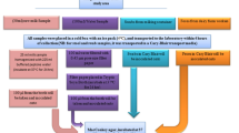 Both surfaces of each sampled currency were thoroughly swabbed aseptically using sterile Buffered Peptone Water (BPW) (Merck, Germany) soaked cotton on pre-sterilized aluminum foil. The swab was dipped into 10 ml BPW and incubated for 24 h at 37 °C. After which a loop full was streaked on Eosin Methylene Blue (EMB) agar (Oxoid, UK) and incubated overnight at 37 °C. Characteristic metallic shine E. coli presumptive colony was transferred into Nutrient Agar for biochemical test using Indole production, Methylene red reduction, Voges Proskauer reaction and Citrate utilization (IMViC) tests according to Quinn et al. (2004). Escherichia coli ATCC® 25922™ (USA) was used as a control cultures. Antimicrobial susceptibility test was done on 43 randomly selected isolates by the Kirby-Bauer disk diffusion method (Bauer et al. 1966; CLSI 2007). The tested bacterium was taken from an overnight freshly grown culture and inoculated into 5 ml Brain Heart Infusion Broth (Merck, Germany). The inoculated broth was incubated for 4 h to approximately 106 CFU/ml at McFarland 0.5 % level of turbidity (CLSI 2007). With this culture, a bacterial lawn was prepared on Mueller–Hinton agar (Oxoid, UK). Antimicrobials against (Oxoid, UK) including chloramphenicol (C 30 µg), neomycin (N 30 µg), oxytetracycline (OT 30 µg), polymyxin-B (PB 300 IU) and trimethoprim-sulfamethoxazole (SXT 1.25/23.75/µg) were used for test. Result was interpreted using the diameter of zone of bacterial growth inhibition surrounding the disc (CLSI 2007).