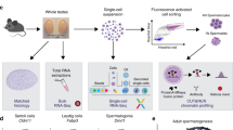Testes were removed immediately after castration and crosscut into the size of 5 mm × 5 mm and fixed in 4% paraformaldehyde (PFA) or Bouin’s solution for 12 h at 4 °C. Tissues were dehydrated in 30%, 50%, 75%, 95% and 100% ethanol, and then treated with xylenes before embedding in paraffin. For RNA extraction, tissues were cut into small pieces and snap-frozen in liquid nitrogen immediately and then stored at − 80 °C.
