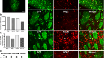 At two months post-injection, mice were deeply anesthetized with isoflurane and transcardially perfused with PBS followed by 4% paraformaldehyde (PFA). Brains were extracted, post-fixed in 4% PFA at 4 °C for 72 h, and then cryoprotected in 30% sucrose in PBS until fully submerged. The brains were embedded in Tissue-Tek® O.C.T. Compound and stored at − 80 °C. Coronal Sect. (14 μm thick) were prepared using a freezing microtome and processed for immunofluorescence analysis. Sections were washed and incubated in 5% donkey serum for 1 h at room temperature to block nonspecific binding. Primary antibodies were applied at a 1:200 dilution and incubated overnight at 4 °C.