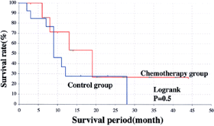 Twenty-two patients with pancreatic cancer underwent the radical operation between January 1999 and April 2005. Intra-arterial adjuvant chemotherapy with cisplatin (CDDP) and 5-fluorouracil (5FU) was selectively performed on nine patients; the remaining 13 patients did not receive chemotherapy and comprised the control group.