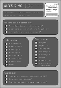 Lamb B, Sevdalis N, Mostafid H, Vincent C, Green JS. Quality improvement in multidisciplinary cancer teams: an investigation of teamwork and clinical decision-making and cross-validation of assessments. Ann Surg Oncol. 2011;18:3535–43.