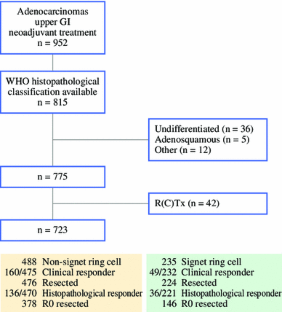 Chirieac LR, Swisher SG, Correa AM, Ajani JA, Komaki RR, Rashid A, et al. Signet-ring cell or mucinous histology after preoperative chemoradiation and survival in patients with esophageal or esophagogastric junction adenocarcinoma. Clin Cancer Res. 2005;11:2229–36.