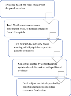 Over the course of one-on-one consultations, lasting 30–40 min each, with 30 medical specialists (19 colorectal surgeons, 4 general surgeons, and 7 medical oncologists) from 16 hospitals in Taiwan followed by a 2-h meeting with 8 physician experts (3 general surgeons, 4 colorectal surgeons, and 1 thoracic surgeon), 12 key questions on cytoreduction were addressed. This was further contextualized based on published literature.